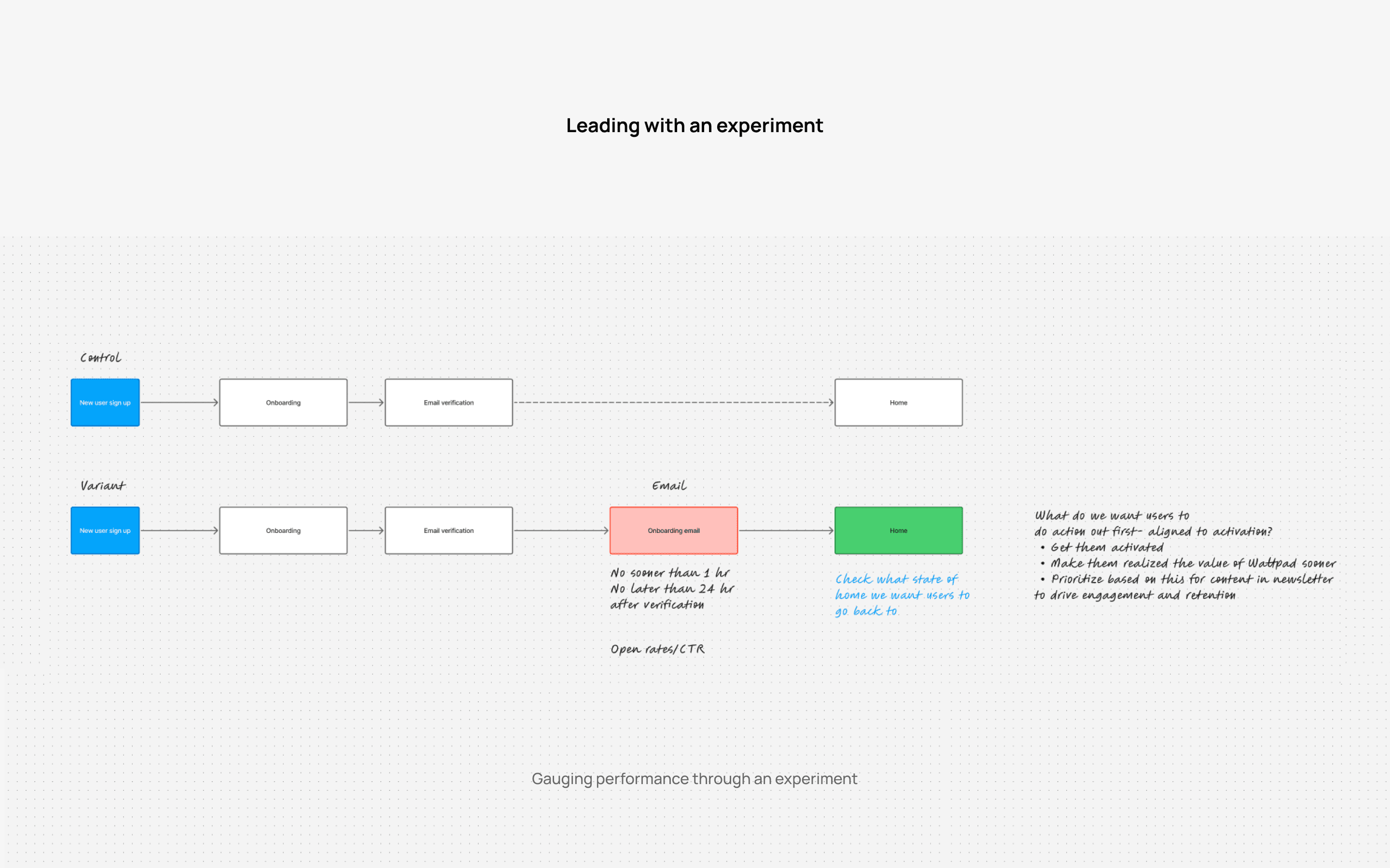Determing if a new welcome email helps new users discover value in Wattpad, with success measured by an increase in week 1 and week 4 user retention